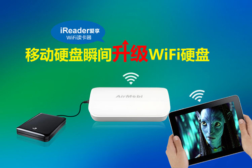 2014年,不只是馬上有車有房有錢有對象,移動硬盤也能馬上升級成WiFi硬盤了。 AirMobi iReader愛享是一款WiFi讀卡器,可以把移動硬盤,U盤,SD卡等存儲器瞬間升級成WiFi存