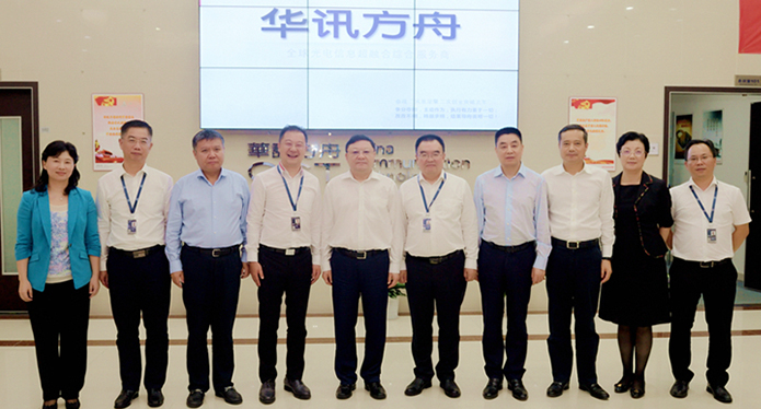 2月28日,全國工商聯黨組副書記、副主席樊友山在全國工商聯經濟部部長譚林、全國工商聯會員部副巡視員張世芳等領導陪同下蒞臨華訊方舟集團總部參觀考察。
