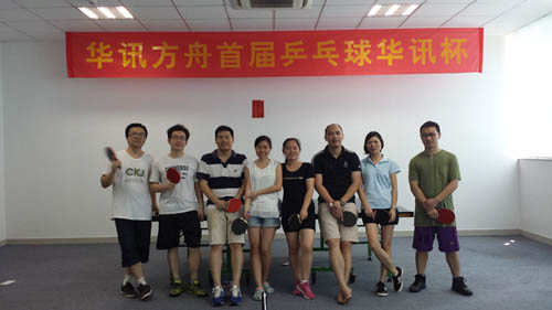 5月17日,華訊方舟首屆乒乓球“華訊杯”決賽在總部一樓火熱開賽。首屆“華訊杯”從5月4日開始,在為期兩個多星期的乒乓球賽中,出線的選手們展開了激烈